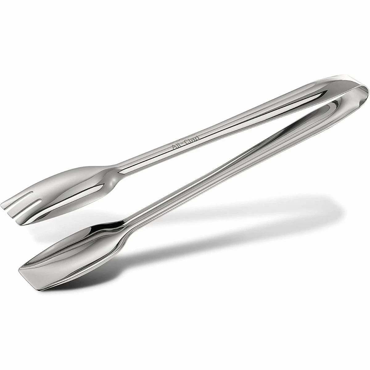 When you need to mix up a salad, flip over ribs or chicken on the grill, or lay out meats and veggies on a frying pan, the All-Clad Professional Cook & Serve Tongs should be the only set of tongs you own. Made from ultra-durable stainless steel, these tongs feature wide ends that give you the advantage of gripping stringy foods like fettuccine or spaghetti noodles and bulkier foods like steaks or chicken legs. Even the ergonomic handle resembles the ones found on any All-Clad cookware. The important thing is that the tongs are long enough to cook at a reasonable distance while being short enough to use at the dinner table to serve. Backed by a limited warranty, the All-Clad Professional Cook & Serve Tongs will make your cooking look like a serious endeavor.