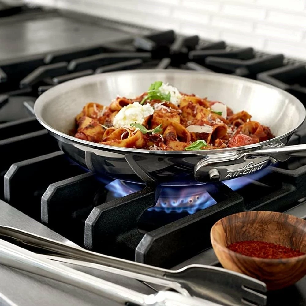 - The ergonomic handle resembles the ones found on All-Clad cookware