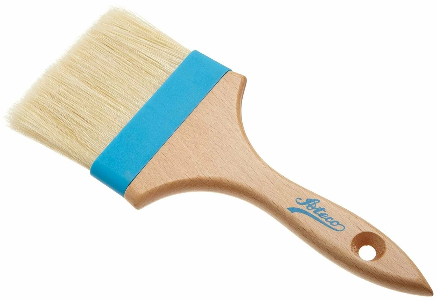 Get perfect golden and flaky crusts every time with the 4” Ateco Pastry Brush. This large sized 4-inch pastry brush is made with white natural boar bristles so you can delicately brush on butter, egg wash, or water with ultimate liquid retention. The smooth wooden handle and vibrant blue accents make this item as stylish as it is comfortable to use, and the wide set brush makes this tool excellent for brushing sauces and marinades on meats. See the Ateco difference on pastries and pies with this stellar pastry brush.