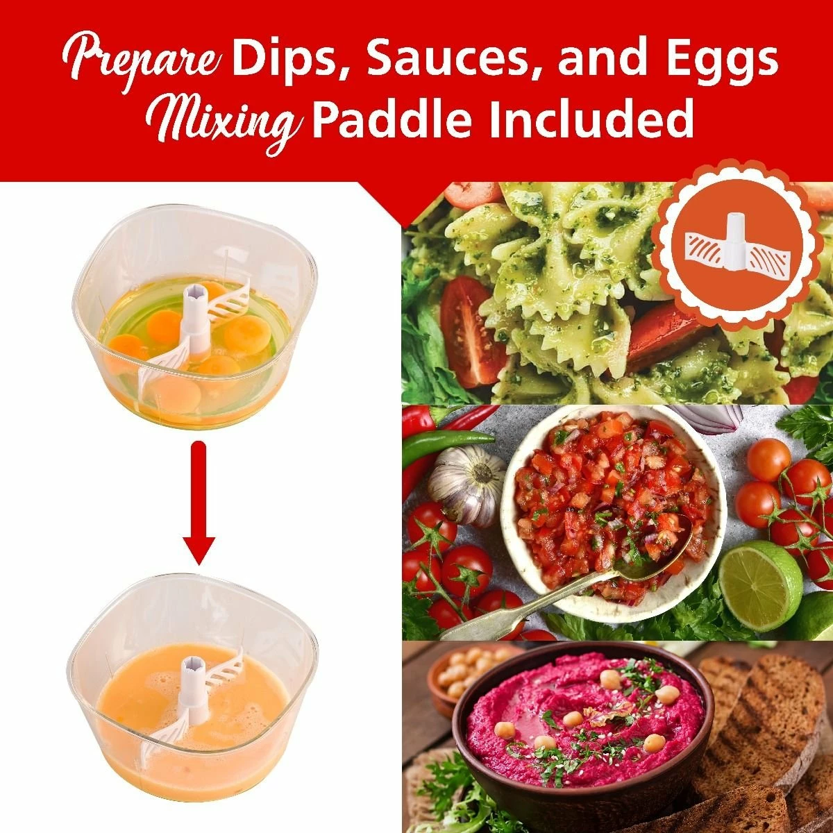 Use the Brentwood KA-5050G Food Processor with Stainless Steel Blades, 8-Cup Storage Container, and Paddle Mixer Attachment for effortless food prep. Easily process food with the efficient handle. Add and remove liquids through the safe, double locking lid. Base stays securely in place with non-slip bottom. Top rack dishwasher safe and entirely BPA free.