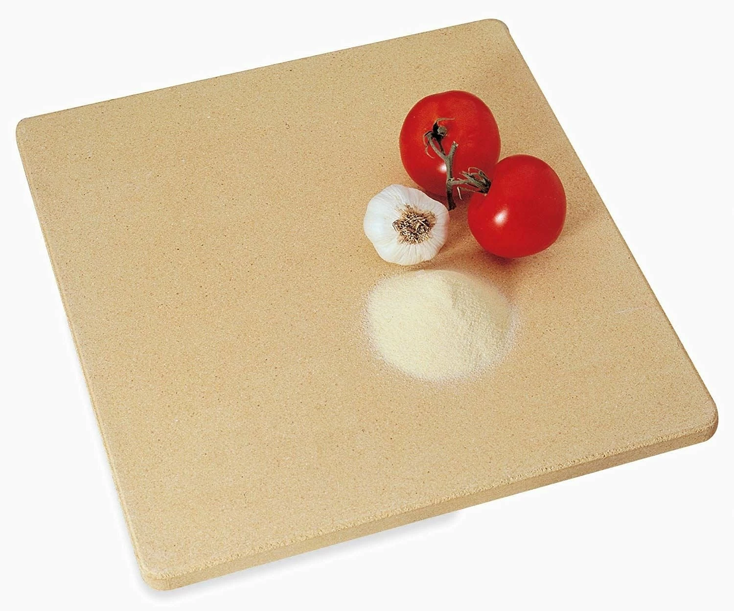 The CucinaPro Square Pizza Stone is 16” x 14” and is 3/4” thick. The CucinaPro Pizza Stone made of identical material that was used in the Old World brick ovens. The square pizza stone is porous and will produce crispy crusts. The CucinaPro Pizza Stone will become seasoned over time and will have a better performance. The pizza stone will scrape clean easily to make clean-up fast and simple.