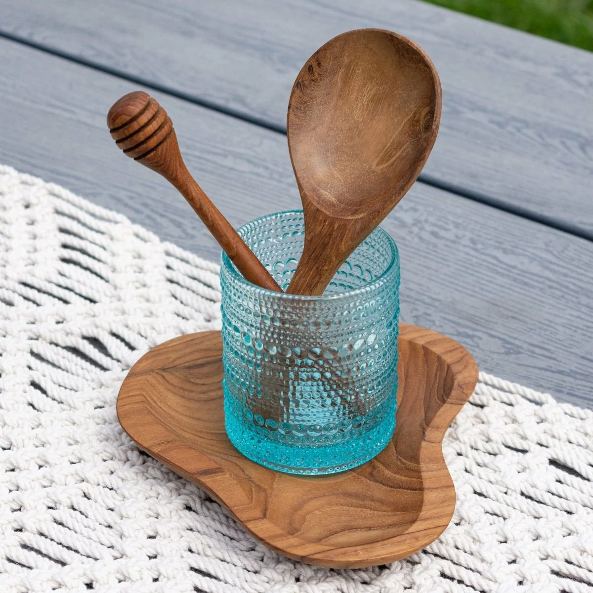 Each reclaimed teak product from Danica Heirloom is handcrafted in Indonesia utilizing the stumps and roots of teak trees that have been harvested for lumber. Subtle variations in grain, color, and shape make each utensil unique and, with basic care, resilient enough for years of service.