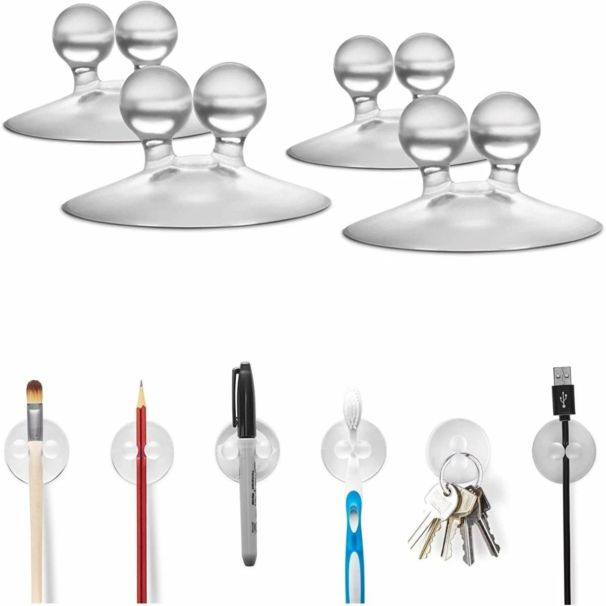 The solution to tangled charging cables, lost keys and more is here with the Dreamfarm Jot Suction Holding Hooks 4 Pack – Clear. These handy little disks feature dual knobs that can be used for holding, hanging and hooking small items without the difficulty of mounting something to your wall — just use the suction cup to adhere Jot to smooth surfaces, and for rougher surfaces, use the included adhesive stickers. Small and unassuming, Jot can blend in with any decor in any room in your house. Hold a pencil at your workspace, your toothbrush over your bathroom sink, oven mitts in your kitchen and more with the Dreamfarm Jot Suction Holding Hooks 4 Pack – Clear!