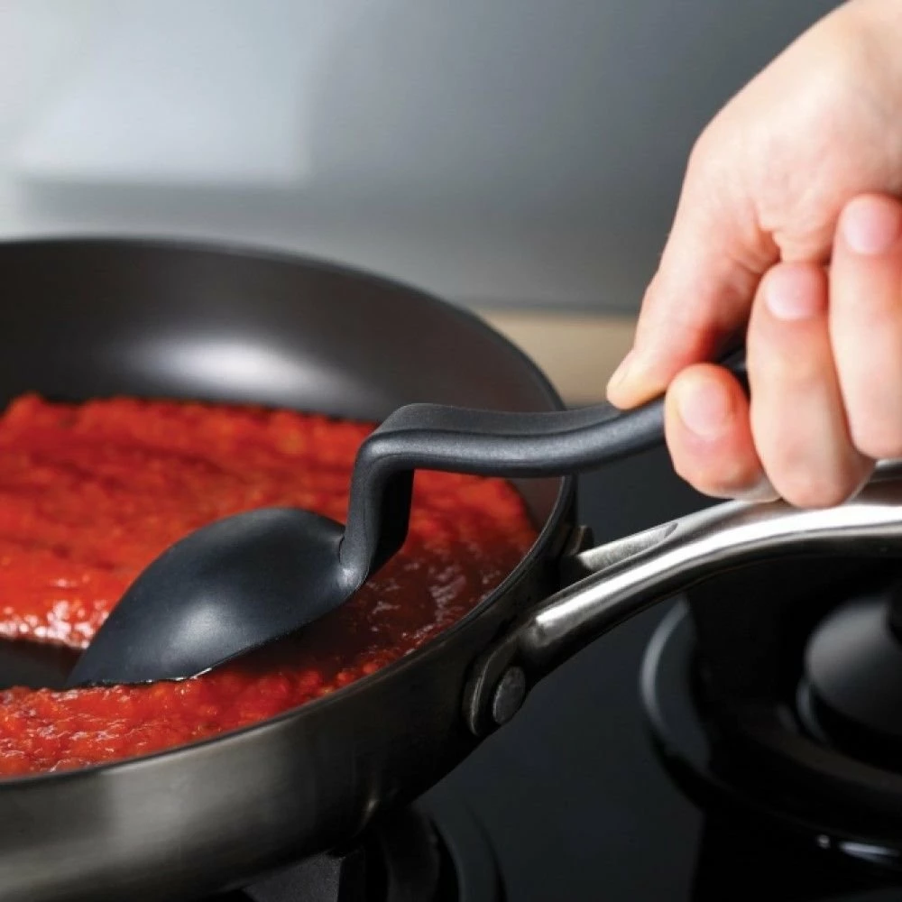 - Its unique design creates its own spoon rest to keep benches and counters mess-free