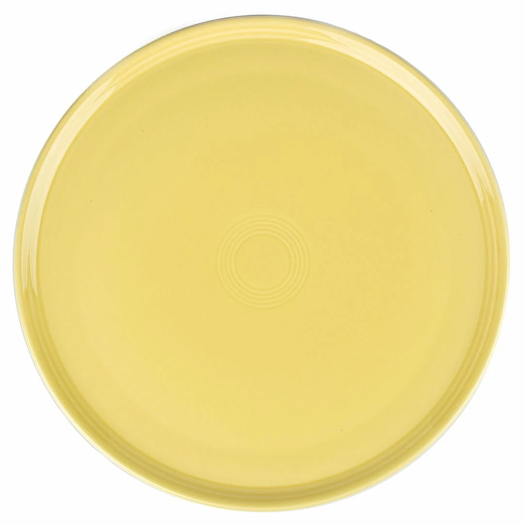 A tray, but so much more! Right out of the oven and on to the table – the Fiesta® 12” Ceramic Baking/Pizza Tray, made by the Homer Laughlin China Company, is much more than meets the eye in that not only is it capable of serving tasty dishes, but also bakes, roasts, and more as well. Just off the attractive sunflower glaze surface reflects the quality and care that went into making such a durable and reliable baking tray, with so many options packed into such a simple design: serving pizza, baking apple pie, or even roasting some asparagus. The result of high heat and guided direction led to the formation of such a convenient vitrified ceramic, lasting time after time in the oven, microwave, or even the dishwasher. This makes for such a versatile tray like not many others, if any, not to mention being totally safe for food. Space is plentiful and stores away rather easily once you’re finished serving up some delicious pineapple pizza, fully loaded baked potatoes, and more. When using up extra counter space or piling up one dirty dish after another to clean doesn’t sound appealing, make life so much simpler, and a tad less messy, with the Fiesta® 12” Ceramic Baking/Pizza Tray in Sunflower Yellow. Don’t watch the fun of your day fall away; instead, serve it up on a tray!