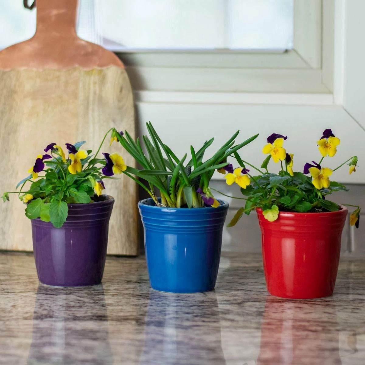 No matter the time of year, you can decorate your home with the versatile Fiesta® Flower Pot Sets. The Bold set features a scarlet, mulberry, and lapis pot that are the perfect complement to deeper, earth-tone decor schemes as well as other Fiesta® products. The perfect size to be used as storage for small ingredients or craft supplies, these pots can also be used to re-pot kitchen herbs and flowers. While the pots do not feature draining holes at the base, using the appropriate potting soil, rocks, and planting charcoal will allow you to grow in-house plants safely. Add some pops of color to your home with the Fiesta® 3-Piece Flower Pot Set in Bold colors today!