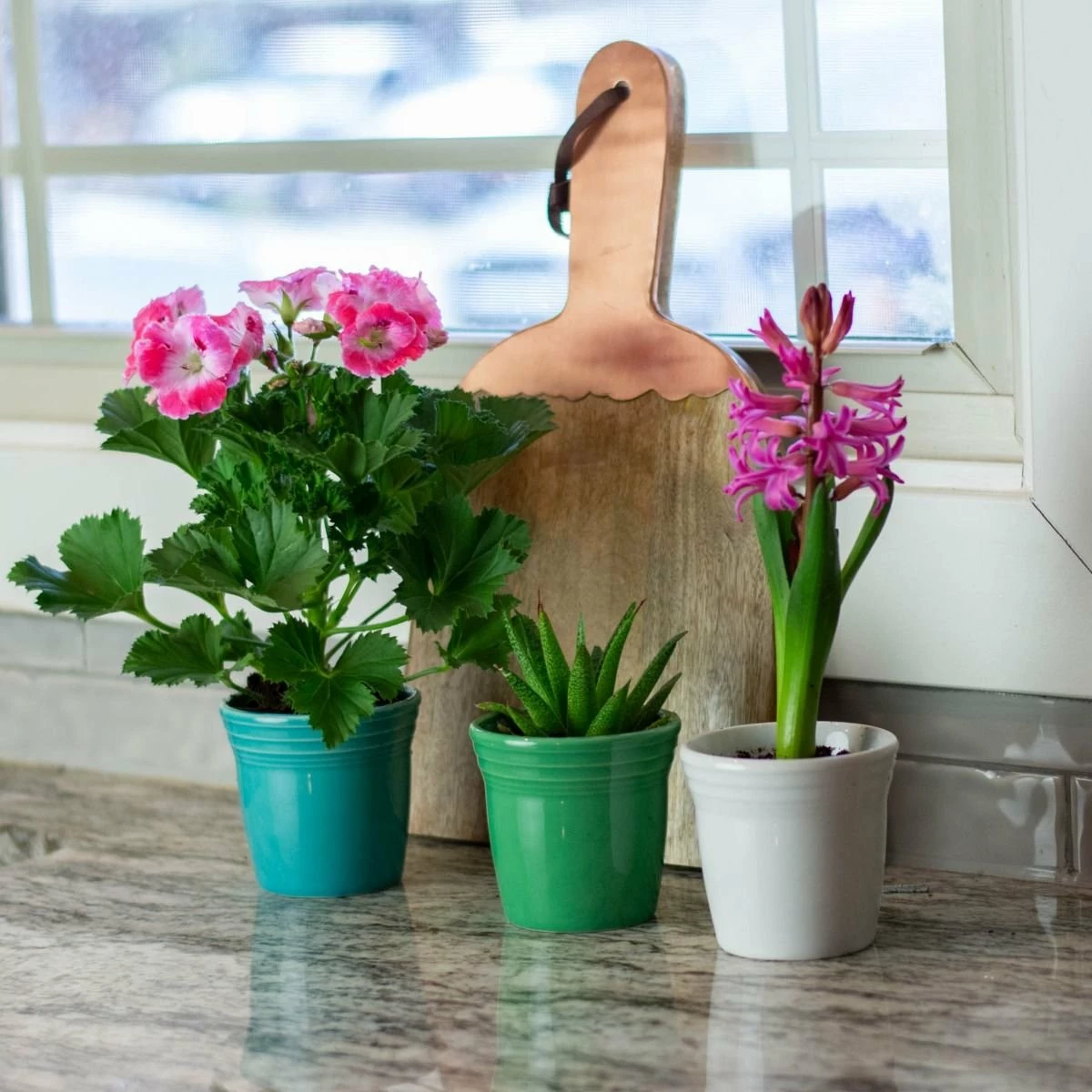 - Set includes one Meadow pot, one White pot, and one Turquoise pot