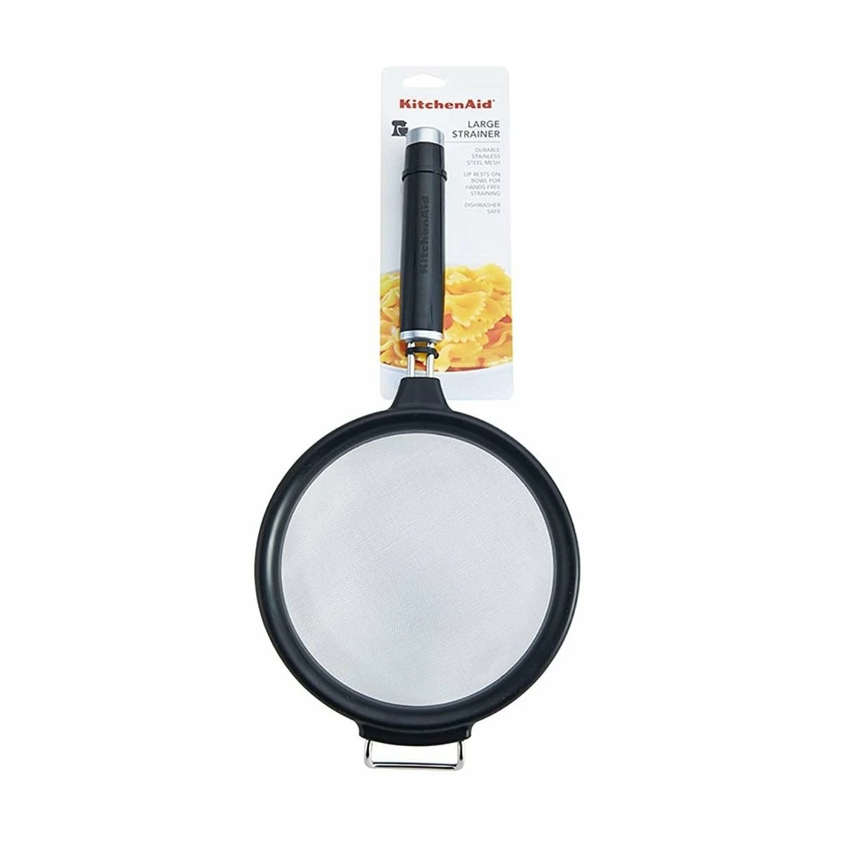 Rinse fresh berries or strain noodles hands-free with the KitchenAid Classic 7” Strainer! This dynamic strainer is designed with a large handle and wide rim, so you can scoop up vegetables, fruits, or noodles then rest on a pot or bowl to rinse & strain with ease. Made of 316 stainless steel mesh with an ergonomic, balanced handle for comfort while in use, this nifty strainer is a great versatile tool that’ll make cleaning, rinsing, and straining a breeze!