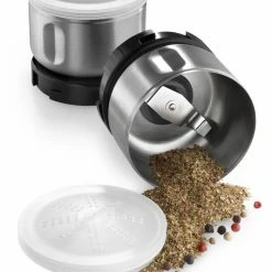 Harness the power of your Kitchenaid BCG111 Coffee Grinder to optimally grind fresh spices. The Kitchenaid Spice Grinder Kit allows you to be more versatile with your BCG111 coffee grinder. The Spice Grinder easily attaches to your BCG111 Coffee Grinder by simply removing the coffee bowl from the coffee grinder and then turning the grinder attachment counter-clockwise onto the base of the coffee grinder. This Spice Grinder accessory kit comes with 2 stainless steel grinding bowls complete with blade assemblies so you are not stuck grinding up one spice at a time. You can store your spices in the bowls with the air tight toppers or serve them freshly ground by putting on the shaker topper and the spice grinder directly off of the coffee grinder and onto the table. The Kitchenaid Spice Grinder accessory kit is able to handle whole peppercorns, coriander seeds , cumin seeds, or whole allspice.
