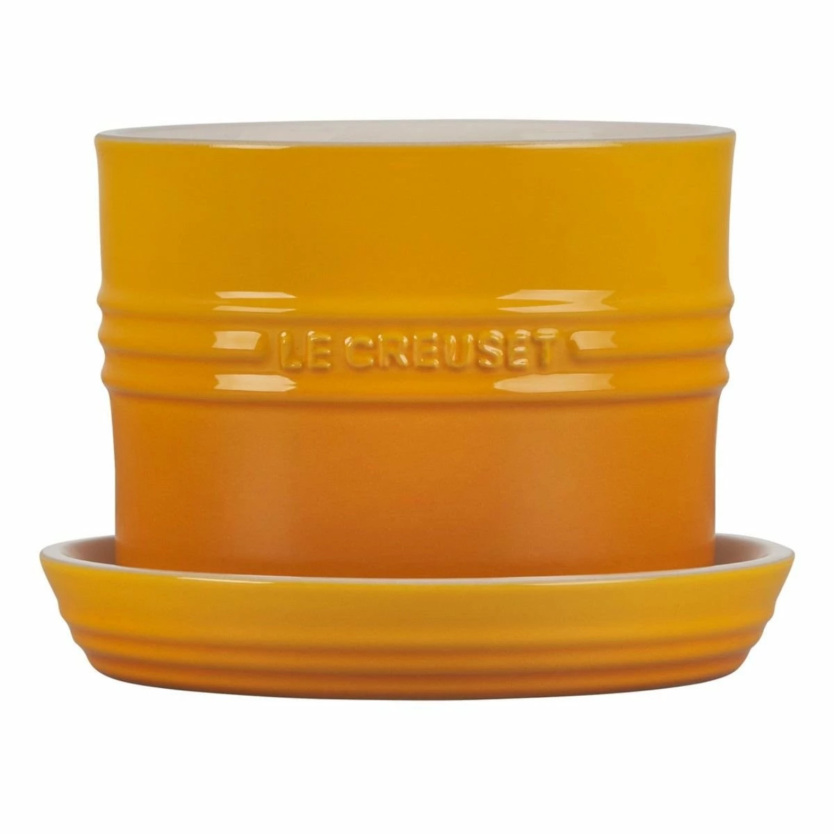 Like all Le Creuset products, this planter is made to endure. Made of the signature Le Creuset stoneware that’s microwave, freezer, refrigerator, dishwasher, oven and broiler safe, this planter can withstand the elements out on your deck or patio. This planter is compact enough to display on your kitchen windowsill and will be right in reach when you need a fresh sprig of oregano, parsley, or other aromatic herbs to add flavor to homemade dishes. This durable piece features a classic, bright nectar yellow enamel finish that doesn’t just add a spark to your kitchen, but will also protect it from scratches and stains. The planter design allows excess water to flow out through a hole in the bottom, to prevent over-watering, and includes a matching round tray for capturing excess water, preventing water damage wherever it’s placed. Herb planters were once very common in all household kitchens, and along with canning and gardening, the practice has made a serious comeback with people focusing on homegrown foods and self-reliance! How much does just a single sprig or two of rosemary or mint cost when you buy it from the store? Why not save that money- it all adds up in the end. And if you decide to toss your plant and then re-use the planter for a new herb or flower, it’s dishwasher safe!