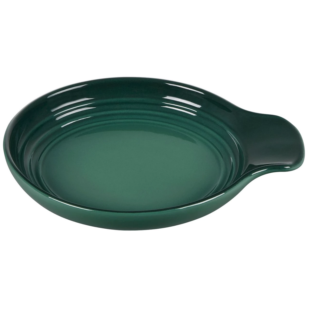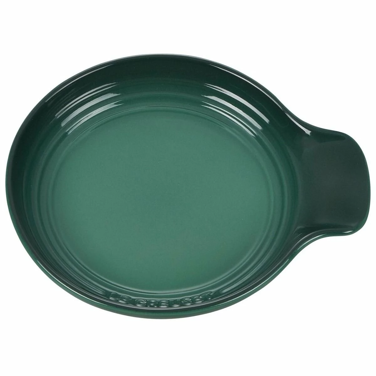 Protect your tablecloth and countertops from unnecessary food mess with the Le Creuset 6″ Spoon Rest in Artichaut. This stoneware spoon rest’s side groove secures your utensil’s handle while the large, circular bowl supports utensils of any size and catches drips and splashes. Whether you’re ladling out savory brown gravy, passing around juicy burgers or serving up heaping spoonfuls of homemade cobbler, bring this gorgeously-colored spoon rest along to the table for an accessory that is both functional and stylish. When it’s time to clean up, this spoon rest’s glazed interior is almost as good as nonstick for rinsing off foods or can be placed in the dishwasher.Â