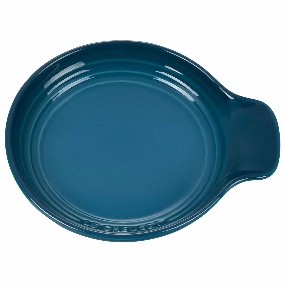 Protect your tablecloth and countertops from unnecessary food mess with the Le Creuset 6″ Spoon Rest in Deep Teal. This stoneware spoon rest’s side groove secures your utensil’s handle while the large, circular bowl supports utensils of any size and catches drips and splashes. Whether you’re ladling out savory brown gravy, passing around juicy burgers or serving up heaping spoonfuls of homemade cobbler, bring this gorgeously-colored spoon rest along to the table for an accessory that is both functional and stylish. When it’s time to clean up, this spoon rest’s glazed interior is almost as good as nonstick for rinsing off foods or can be placed in the dishwasher.Â