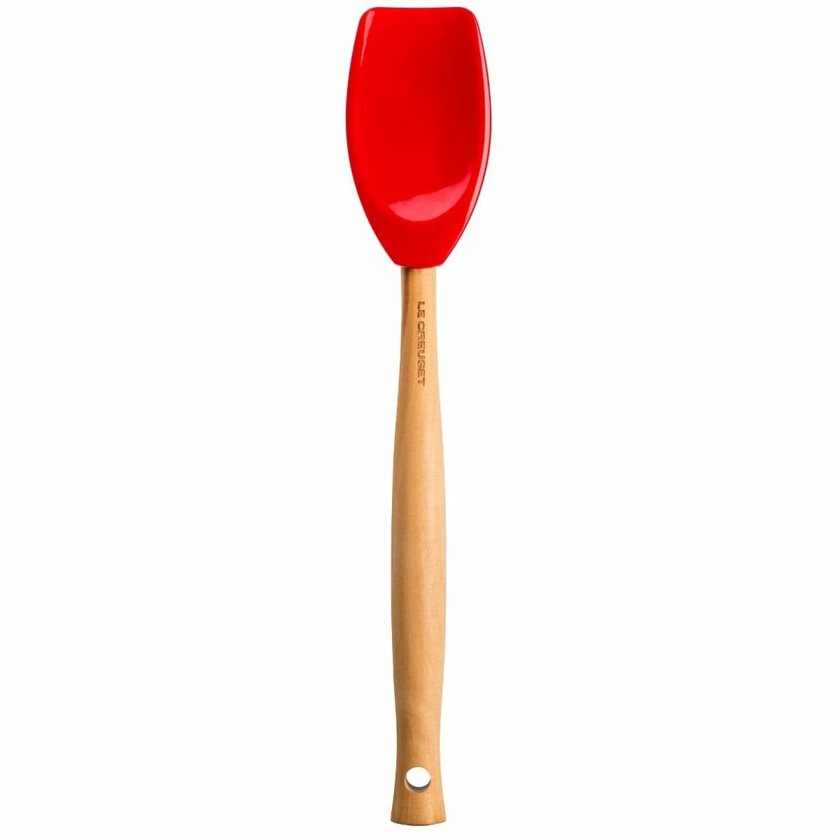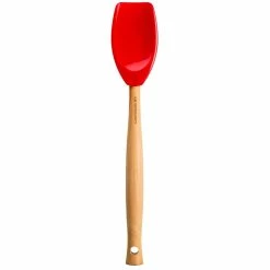 After mixing in your cream and butter, serve your mashed potatoes to your family with the Le Creuset Craft Series Spatula Spoon in Cerise Red. For the discriminating cook that desires the high standard virtues of excellence in function and construction mixed heavily with lasting style, Le Creuset presents a line of innovative silicone kitchen tools that have improved use performance, ergonomic advances, and task-defined shapes. The Le Creuset Craft Series Spoon Spatula has a very strong tip for blending, and for breaking up thick ingredients while mixing. The shape of the blade will work well doing a variety of tasks, whether you are baking, cooking or serving. The Le Creuset Craft Series Spoon Spatula in Cerise Red is a high-quality kitchen utensil that can be your time-saving, problem-solving helping hand in the kitchen whether you are a professional chef or an avid home cook!