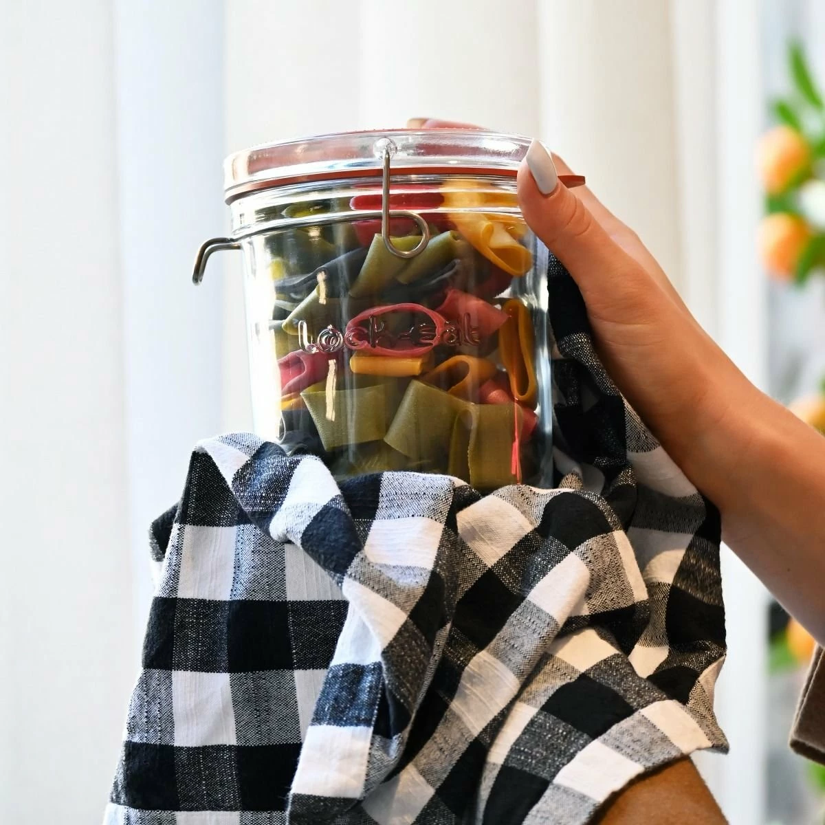 Preserve and store your favorite vegetables, jams, jellies, and so much more with the 25.25oz Lock-Eat Food Jar from Luigi Bormioli. This glass jar is designed with a completely removable lid, so it can transition from canning to serving and storage. With an airtight lid and included natural rubber gaskets, this jar is a perfect choice for preserving your favorite foods. Turn your pantry into an organized sanctuary by storing any number of dry goods, from sprinkles to snacks, in this clear container. Add some versatility to your canning and storage collections with the Lock-Eat 25.25oz Food Jar from Luigi Bormioli, get yours today!