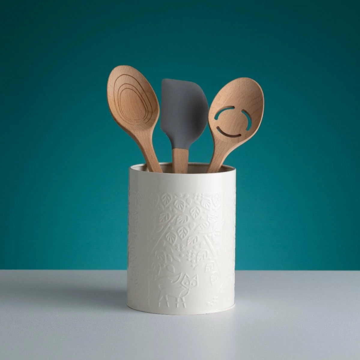 Store your utensils with a little extra charm with the Mason Cash Utensil Pot (Metal) from the In The Forest Collection. This utensil crock is made from coated steel, so it’s extremely durable. The coating allows you to easily wipe clean, so it’s a breeze to maintain. The exterior features Mason Cash’s enchanting embossed designs inspired by mid-19th century folklore that has made the In The Forest collection so iconic. With a 2.4-quart capacity, this utensil pot is able to hold plenty of utensils at a time, making it great for small and large kitchens alike. Store your utensils and say goodbye to boring storage containers. Get the Mason Cash In The Forest Utensil Pot today!Â