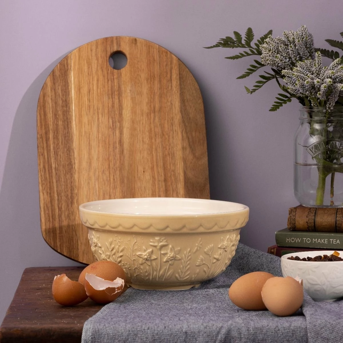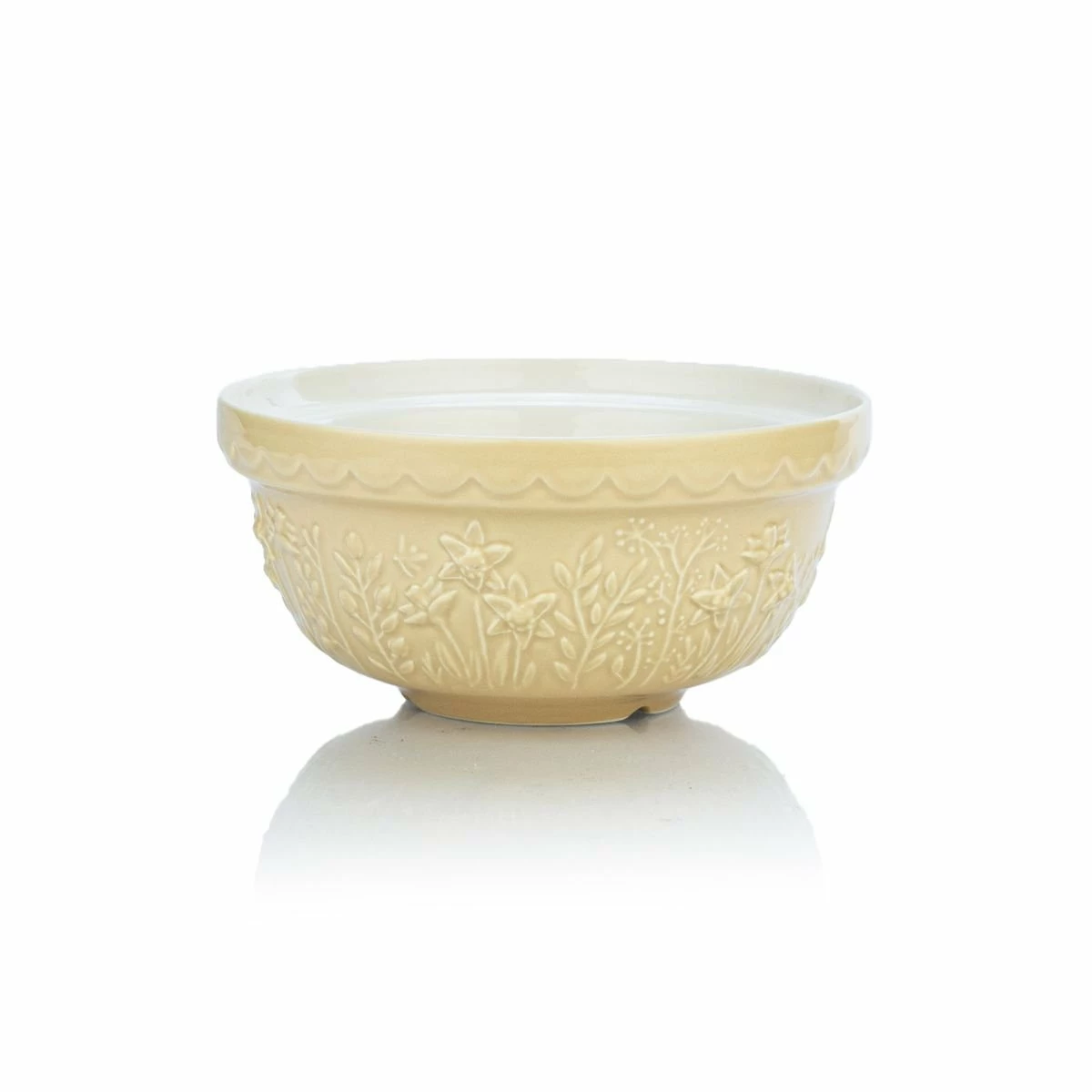 Bring the effortless charm of lush countryside fields indoors with the Mason Cash In The Meadow Collection S30 Mixing Bowl in Daffodil. Made with Mason Cash’s time-honored stoneware that is resistant to chipping and cracking, this mixing bowl will be a durably elegant addition to your everyday baking preparation. With a 1.25 Quart capacity, the S30 mixing bowl is ideal for preparing smaller batches of dough or batter or for serving side dishes. The soft ochre coloring is highlighted with an embossed Daffodil design that lines the bowl’s perimeter, while the classic scalloped rim offers maximum grip – making for a practical, elegant piece that will let mixing tasks go smoother. Let your baking tasks bloom with style and order the Mason Cash In The Meadow Mixing Bowl today!