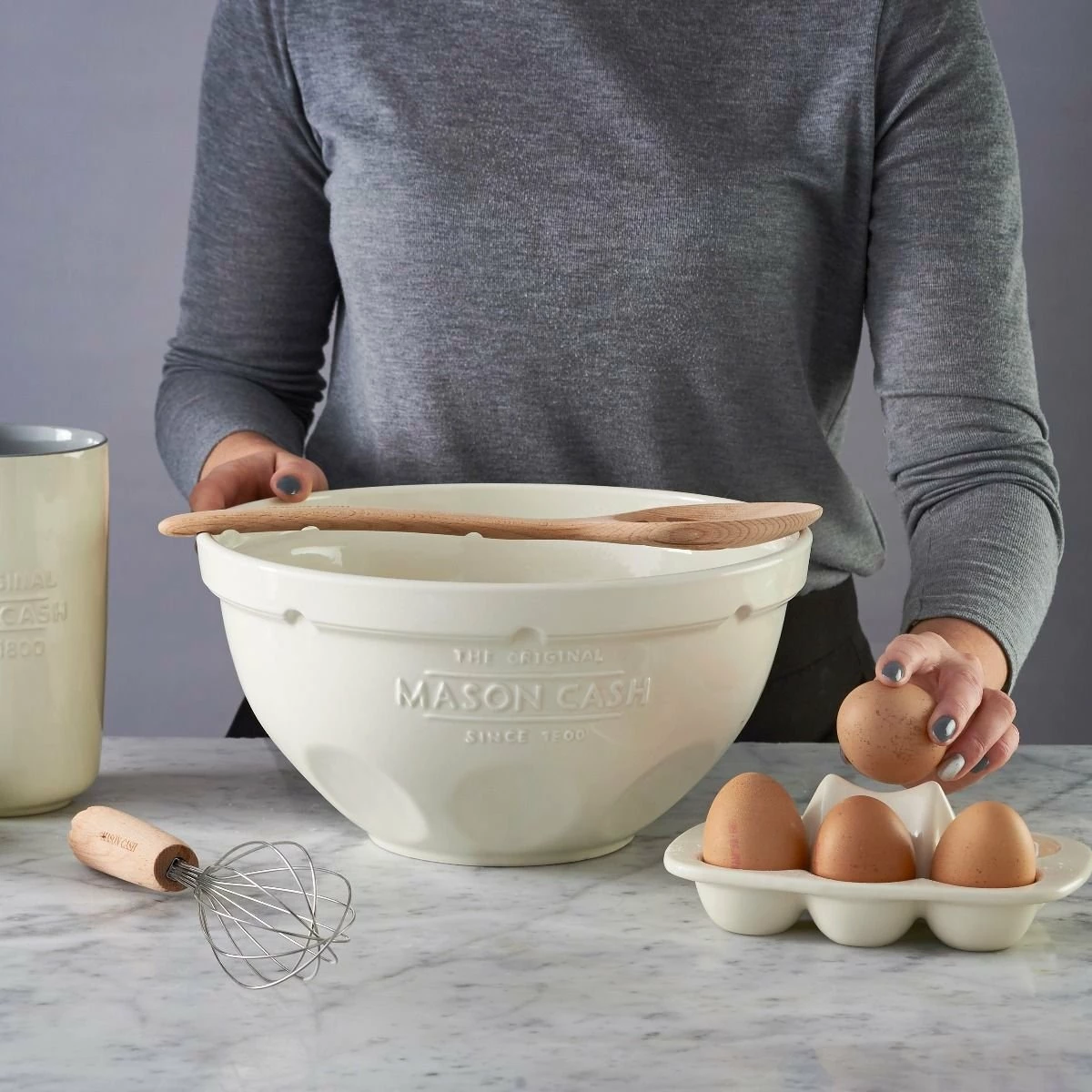 - Grooves on the back of the spoon handle allows the spoon to sit on a Mason Cash Mixing Bowl or Pudding Basin so you can crack eggs directly over the bowl