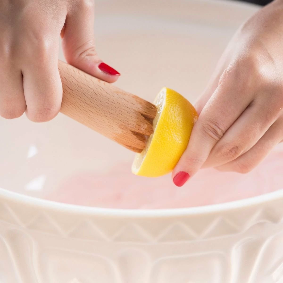 - High-quality balloon whisk with a beech wood handle that’s designed to serve as a citrus reamer