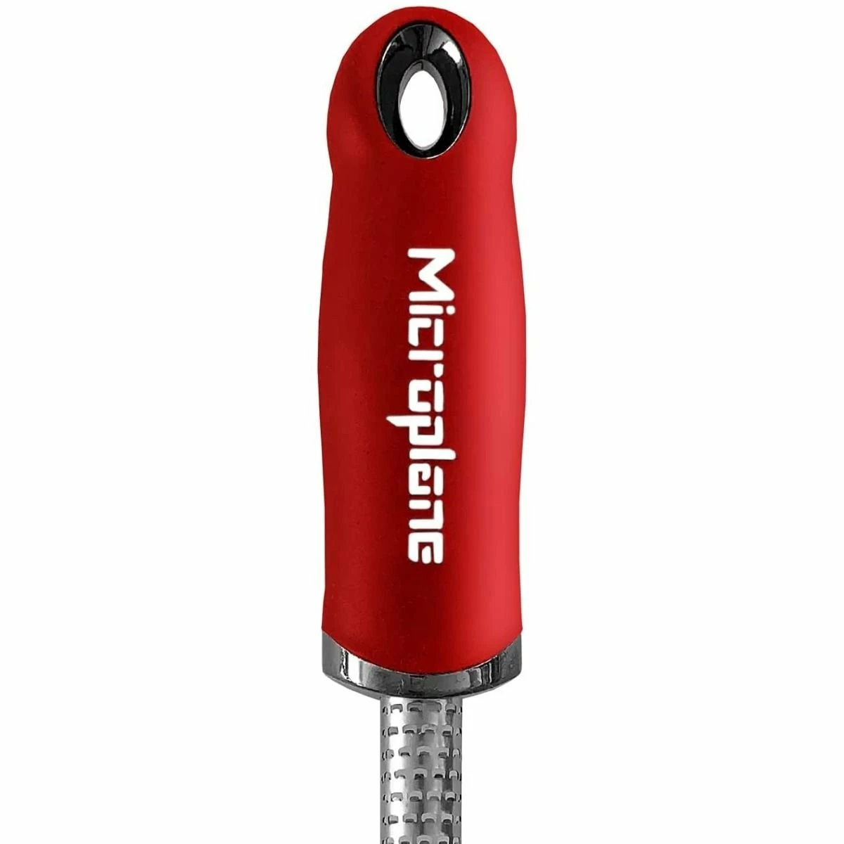 The Microplane Premium Series Spice Grater in Red grates hard spices such as cinnamon and nutmeg for the top of your hot drink. The surgical grade stainless steel blade has a soft-touch handle for easy handling as you add the aromas and flavors that Marco Polo sailed around the world to find to your favorite recipes.