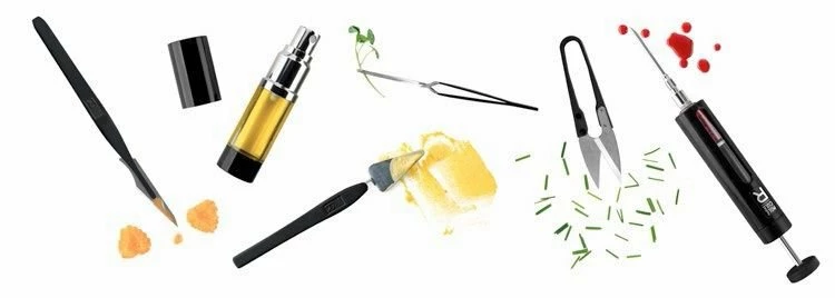 Become a modernist cuisine mogul with the Food Styling R-Evolution food styling tool kit from Molecule-R! The Food Styling R-Evolution kit includes all you need to plate gourmet meals for parties and important dinners. Great for molecular gastronomy. Dress up your meals and have fun in the kitchen with the Food Styling R-Evolution molecular gastronomy tool kit from Molecule-R!