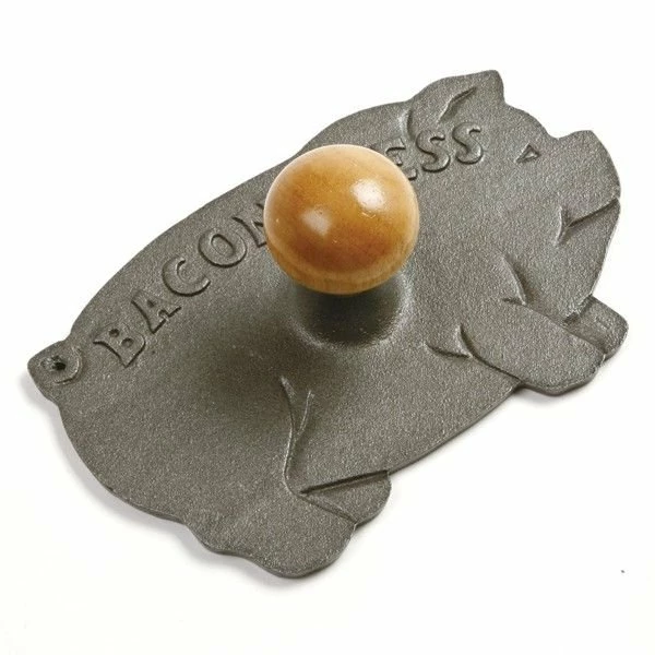 Hear that sizzle? It’s fresh cooked bacon, flat, juicy, ready to be devoured. The Norpro Cast Iron Bacon Press is a must have in your home for the perfect slice of cooked bacon. The 2 pound weight and 3 x 8 inch dimensions ensure you’ll have flat bacon, cooked evenly without curling. Don’t worry about burning your hand with this product because the wood handle stays cool while in use. Speed up the process of cooking by pre-heating your Norpro cast iron bacon press. Fortunately bacon goes with everything, so you’ll be sure to get great use out of the cast iron press!