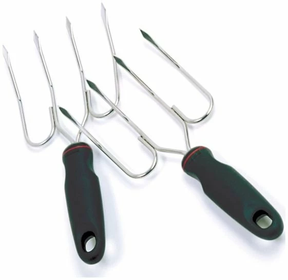- The over sized handles with finger indents give a great hold without strain and keep hands clear of the prongs