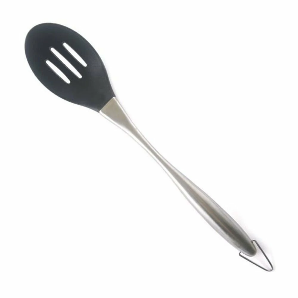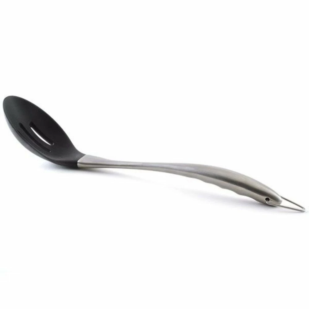 If you are looking for durable utensils that will look great in your kitchen, the Norpro Stainless Steel and Silicone Slotted Spoon is for you. This spoon is made of the two most durable kitchen materials with a stainless steel body and a silicone head. This makes it heat resistant up to 482°F, perfect for working with piping hot soups and stews, as the slotted bowl is ideal for removing ingredients and draining liquid. The modern design includes a hanging hook at the base so it’s easy to store even in small kitchens with little counter space! To make this spoon even more desirable, it’s dishwasher safe. Dish up a delicious meal with the Stainless Steel and Silicone Slotted Spoon, get yours today!