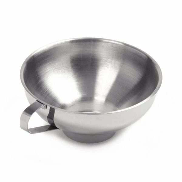 The wide mouth of this funnel makes it easy to funnel large amounts of liquids or dry goods at a time. FDA approved and made with professional grade stainless steel.