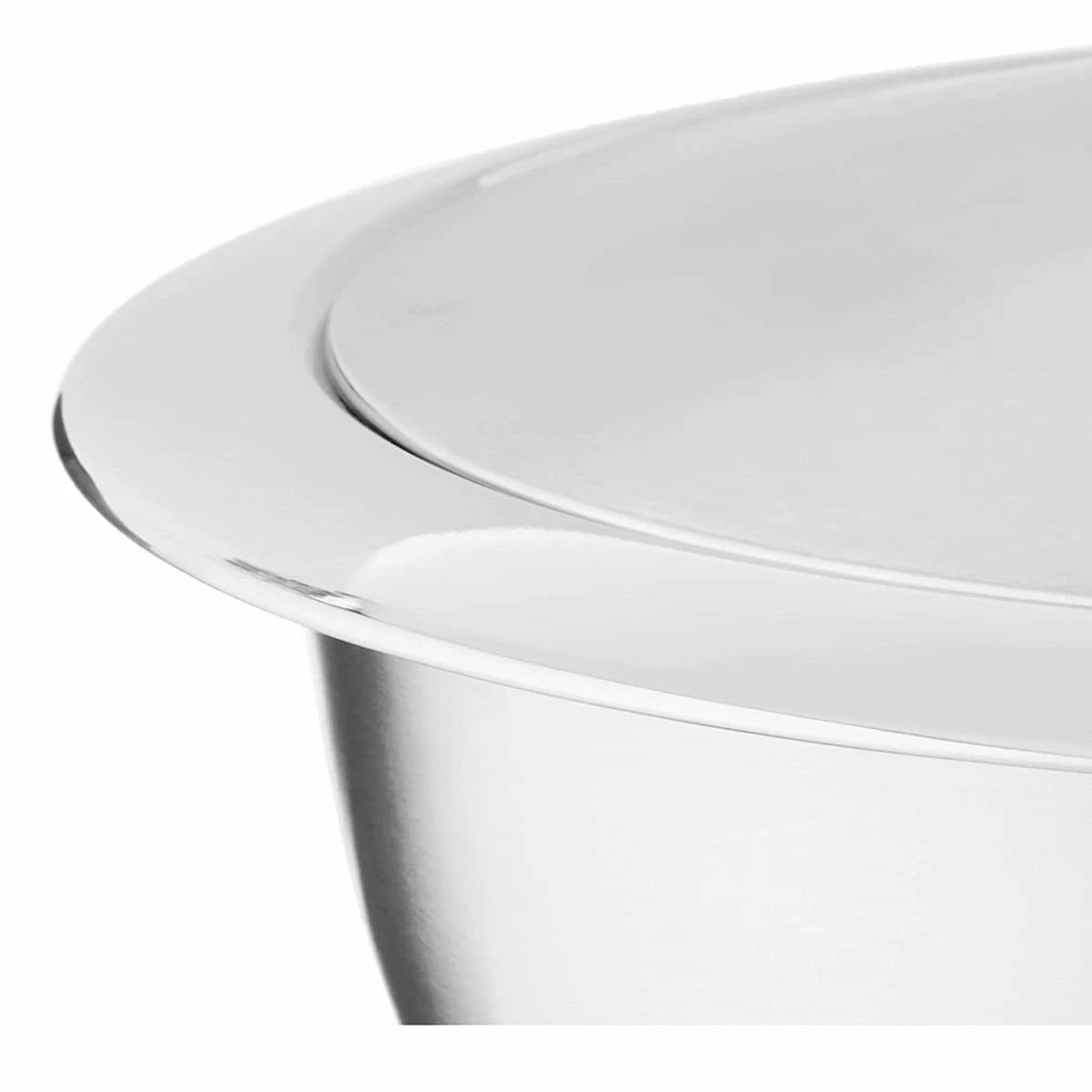 The bowl holds five quarts and handwashing is recommended to preserve the finish.