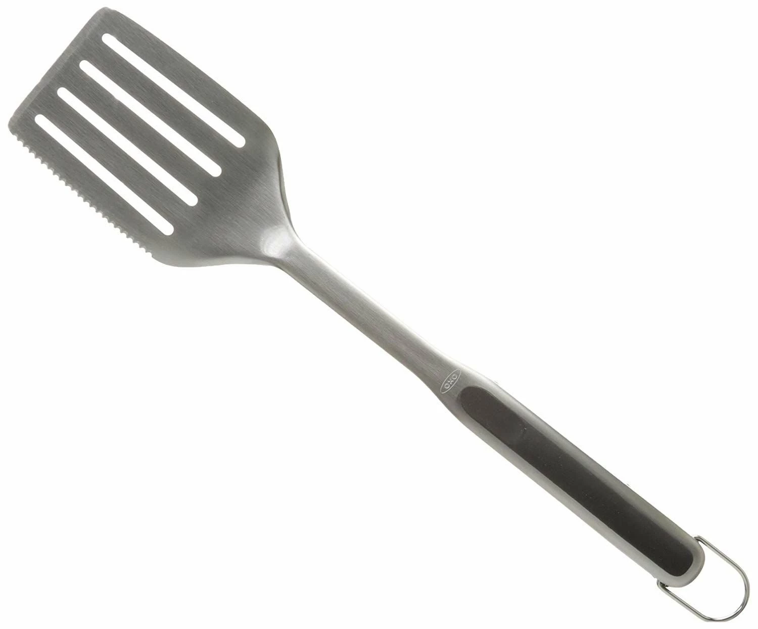 To make a perfectly grilled steak you’ll need perfect grilling companions like this powerhouse tong and turner duo! This grilling tool set is made of high-quality stainless steel with extra long handles and soft non-slip silicone grips for superior comfort. The locking clips keep these tongs closed when not in use and the scalloped edges aid in picking up cuts of meat with ease. OXO considers everything and constructed this tong and turner grilling pair with loops for storage and clean up couldn’t be easier just put them in your dishwasher and move on. Take your outdoor cooking to the next level, you’ll be glad you did when your sizzling steak is lifted from the heat and placed on your plate with a tool from the OXO 2 piece grilling set.
