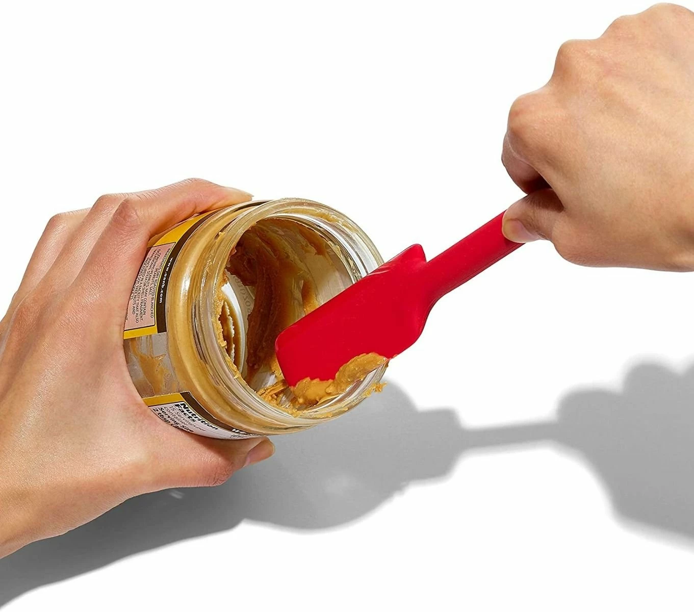 Add some versatility to your kitchen with the OXO 2-Piece Silicone Spatula Set. This set of two spatulas come in two different sizes to tackle a wide variety of tasks. The small spatula is ideal for working with saucepans and small batches of batter. The jar spatula is slightly longer and is designed to get the most food out of cans and jars. The flexible edges are beveled to contour to the edges of bowls and jars without any extra effort on your part. When you’re done using these spatulas, they are both dishwasher safe for a quick cleanup!Â
