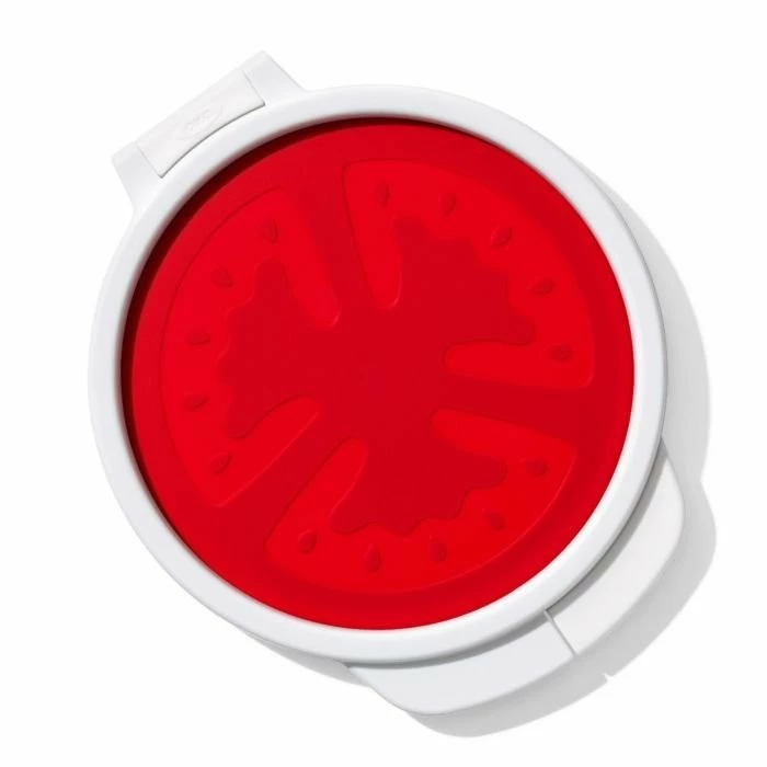 Keep your tomatoes fresh with ease using the Cut & Keep Silicone Tomato Saver. This eco-friendly alternative to plastic storage bags or wraps is a great choice for anyone looking to move toward a zero-waste lifestyle and minimize their carbon footprint. To use the Cut & Keep Tomato Saver, simply place your freshly-cut tomato onto the base, with the cut-side down, and snap the lid closed over the tomato. This allows the silicone to create an airtight seal and locks in the freshness. The compact design of the tomato saver allows it to be stored flat between uses and is dishwasher safe so it is easy to maintain. Donβt let fresh ingredients go to waste, get the OXO Cut & Keep Silicone Tomato Saver today!Β