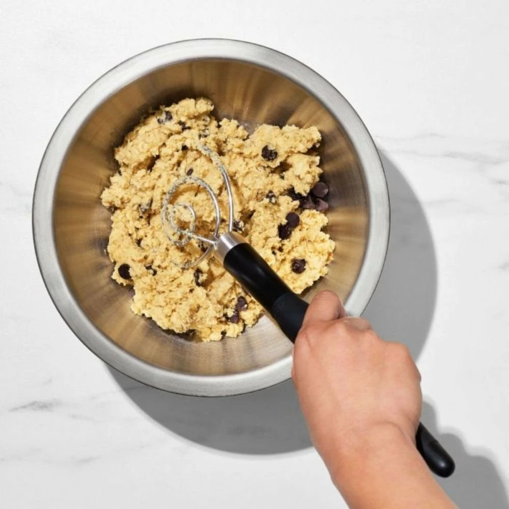 Whipping up the perfect dough is a science and requires the right tools, and that tool is the OXO Dough Whisk. This unique whisk has a stainless steel wire head, woven to perfectly combine ingredients without sticking. The whisk handle is designed to reduce the pressure on your hand as you combine wet and dry ingredients. When you’re done making a delicious cake batter, the whisk is dishwasher safe for easy clean-up. Make better batter and dough without working any harder, get the OXO Dough Whisk today!