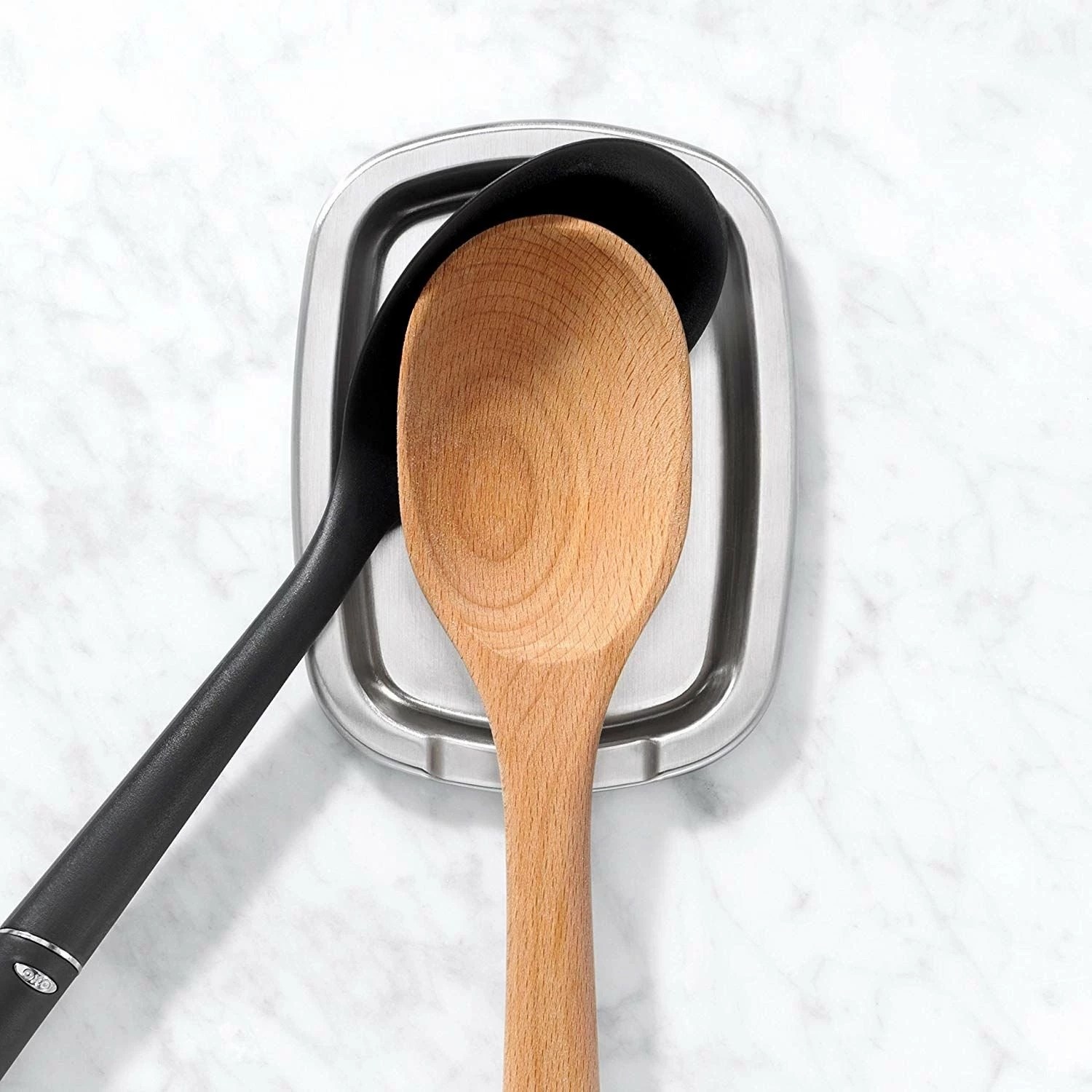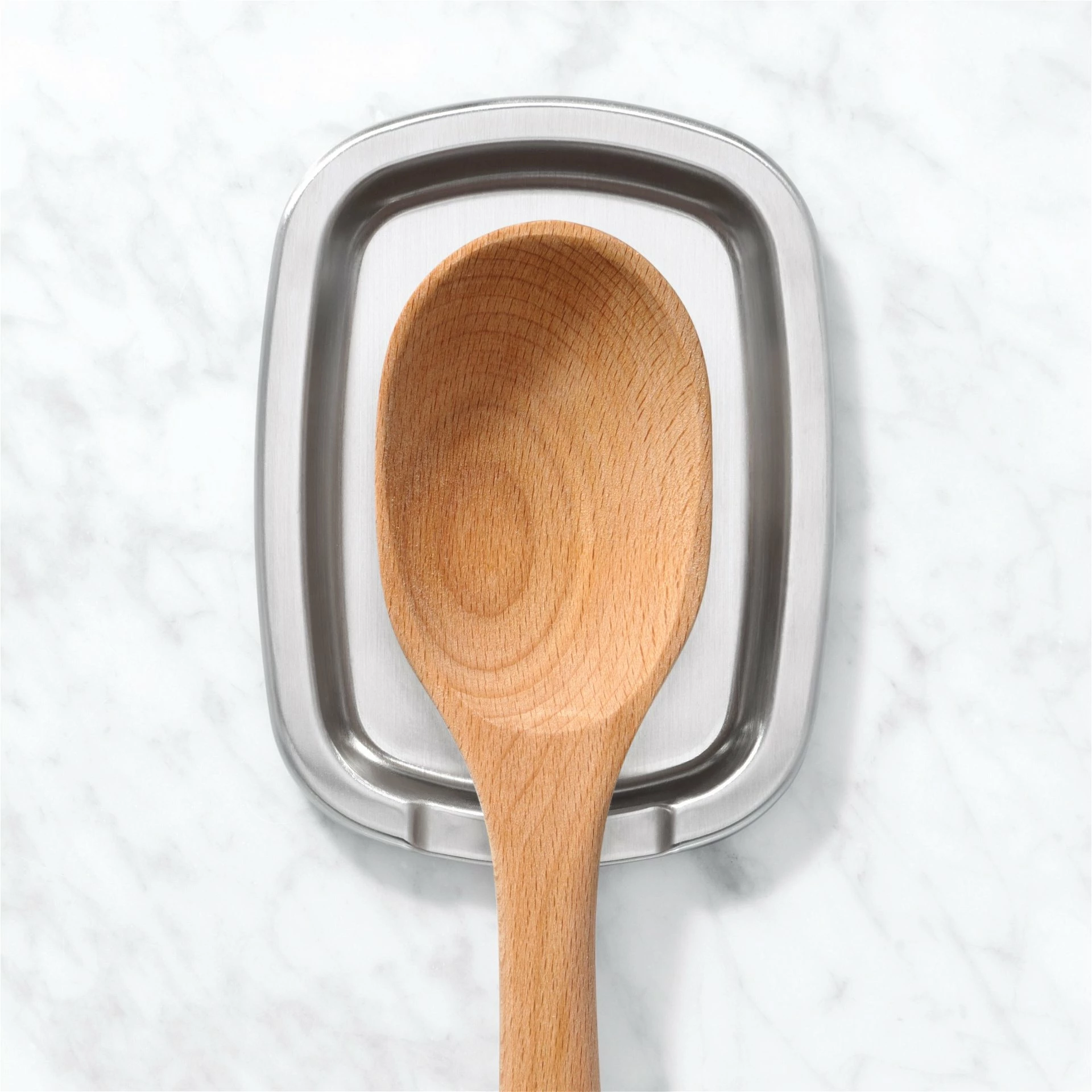 Stovetop spills can cause smoking, burning messes, and even fires; avoid the lengthy clean up with the Stainless Steel Spoon Rest from OXO. This spoon rest is made from stainless steel and silicone and is designed to keep your larger cooking utensil from making a mess on your stovetop. The non-slip silicone feet keep the spoon rest in place and keep the spoon rest at a safer temperature. Save yourself some time and get the dishwasher safe OXO Stainless Steel Spoon Rest today.