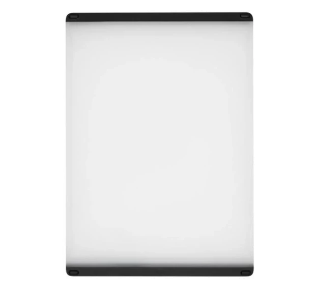 Prep piles of ingredients with ease using the OXO Utility Cutting Board. This large cutting board is designed to be non-porous so it won’t absorb odors or flavors and resist scratching. Want to prepare meat and vegetables for the same meal? This cutting board is double-sided, making it easy to prevent cross-contamination between meats and produce. The meat side is designed with an inset groove that gathers excess liquid. To make disposing of the liquid easy, this board comes with a drip-catcher so you can easily pour any extra liquids into the sink and avoid spills. Both sides of the cutting board feature non-slip grips and non-skid feet so you can confidently chop and slice anything. Keep your counters clean and ingredients looking professionally prepared with the OXO Utility Cutting Board, get yours today!