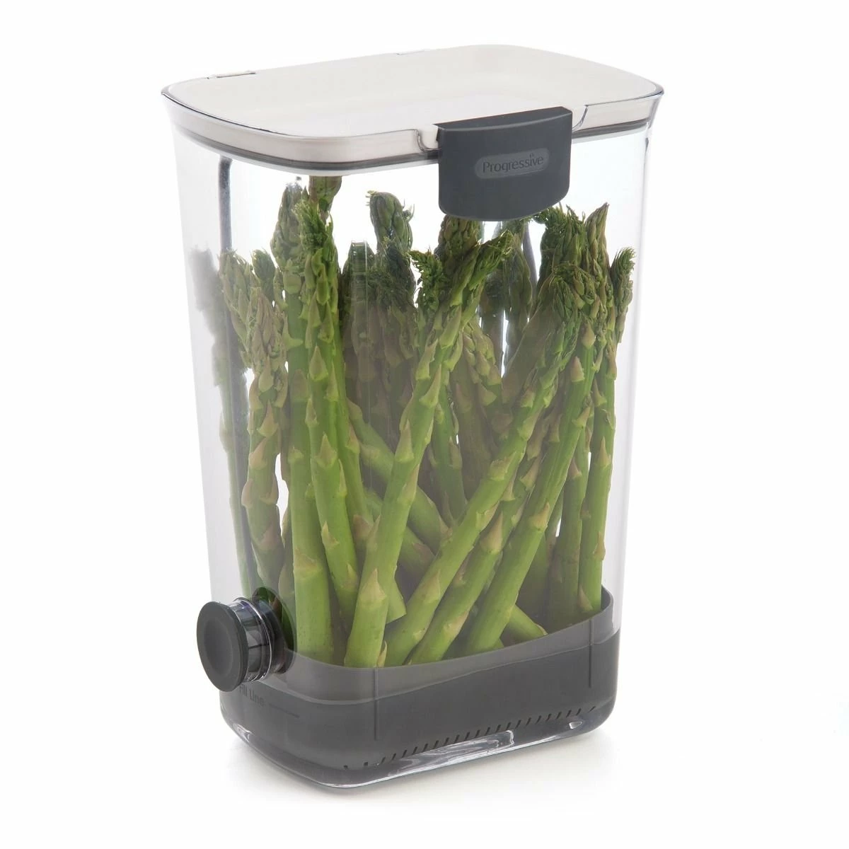 The Prepworks by Progressive herb keeper is the ideal container for storing and preserving herbs, as the silicone seal keeps herbs fresh for extended periods of time. It stores 1-3 bunches of fresh herbs such as parsley, cilantro, or rosemary, and also works great for keeping asparagus fresh and hydrated. The slim design fits nicely in the refrigerator or on the counter. The herbs rest in the internal basket which is raised and lowered when the lid is opened and closed, which allows for easy removal of the herbs and for automatic draining when the basket is raised. The included basket detaches for easy cleaning and the removable silicone plug allows for draining water without removing herbs, making it easy to fill and refill with water.