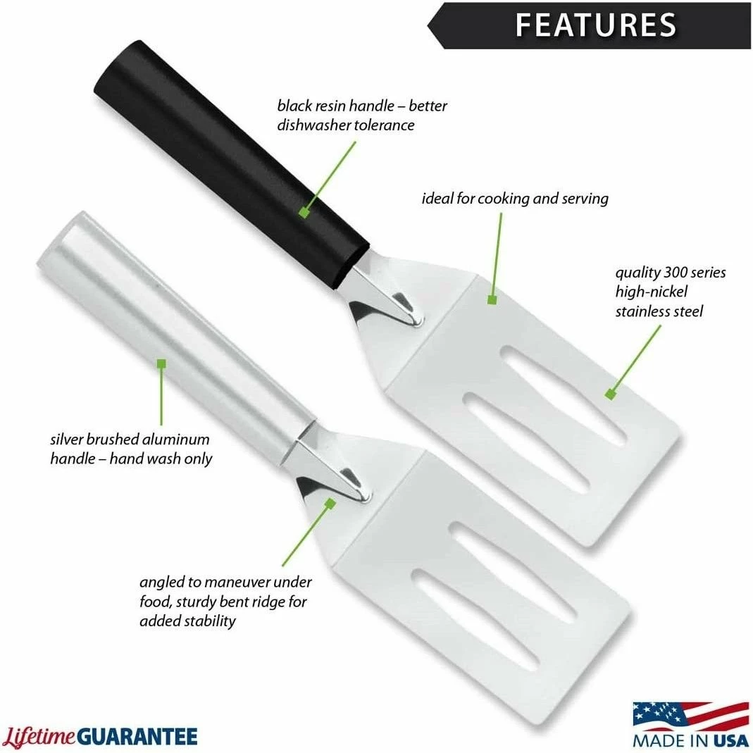 The Rada Spatula is a classic utensil with a thousand different uses, and you’ll find yourself reaching for it just as many times. The metal spatula (3.375″ face, 8.75″ overall) is a cut above ordinary. It is constructed with high-quality stainless steel, resulting in a durable face that won’t bend or break. A sturdy ridge at the base means added stability, making it perfect for both cooking AND serving. You’ll find it possible to remove even the stickiest foods from the pan with ease.