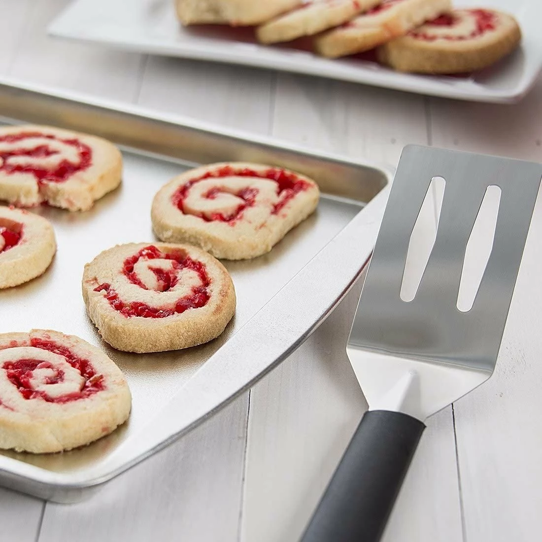 - Easily remove even the stickiest foods from the pan