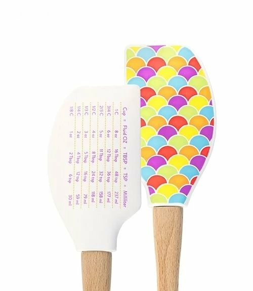 Convert your favorite chocolate chip cookie recipes to that perfect serving size with ease thanks to Tovolo’s Conversion Chart Silicone Spatula. This unique silicone spatula features a conversion chart design to help you convert your recipes from cups to fluid ounces, to tablespoons, to teaspoons, to milliliters so that you can cook what you want, how you want it, hassle free. Put the calculator down, and pick up your cute, silicone spatula with its fade-proof ink design and lovely etched wood handle. With a head that is heat safe up to 600°F, Tovolo’s Conversion Chart Silicone Spatula is sure to become a new favorite in your kitchen.