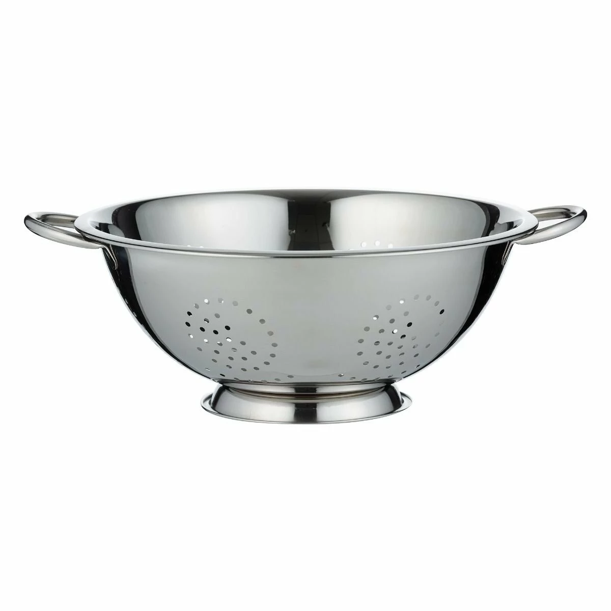 Conveniently and quickly wash produce or strain pasta with this 8 Qt. Colander from Viners Everyday collection. This colander is crafted from high mirror polish stainless steel for a stylish but simple design that will mesh effortlessly with the rest of your kitchen collection.Â