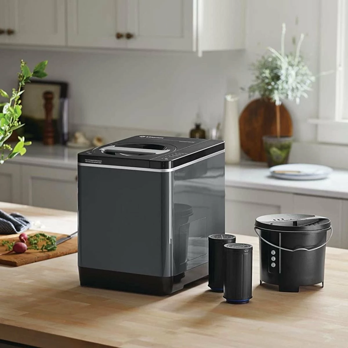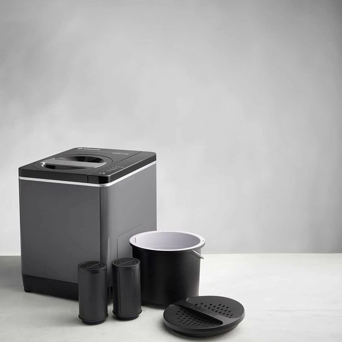 Reduce your food waste from scraps, leftovers & more by placing items into the 2L removable waste bucket which can be conveniently stored under the sink, by the trash can or any where else in the kitchen. Odors are eliminated while you fill up the bucket thanks to the carbon filter in the lid.