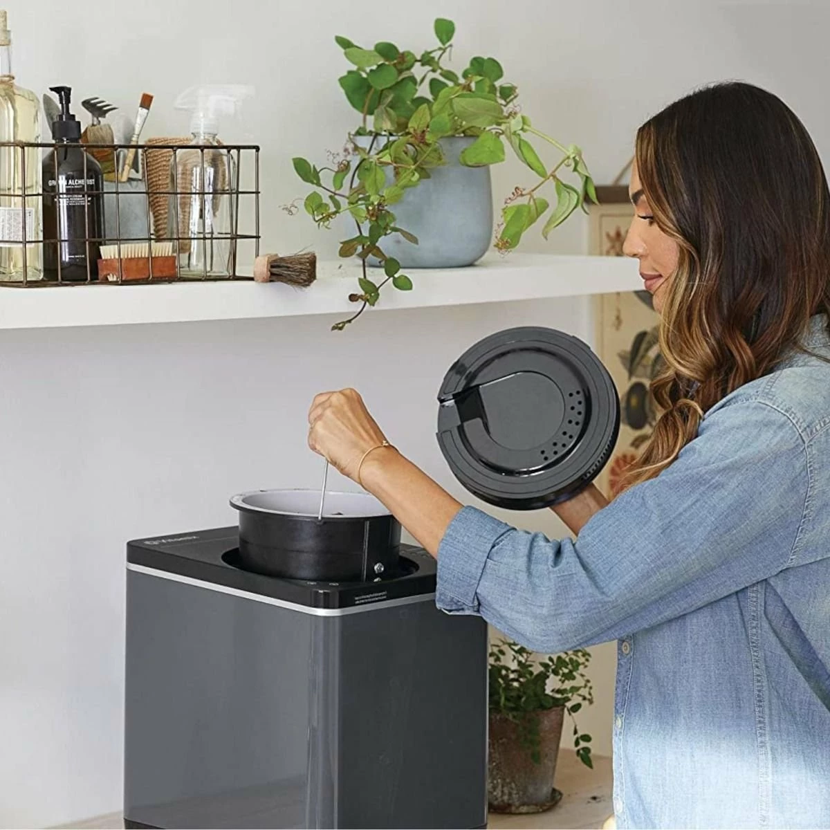 Composting has never been easier thanks to the Vitamix FoodCycler®! The small compact food recycler takes up only one cubic foot of space & can easily be put on a kitchen countertop, in the garage, closet or utility room. The FoodCycler® plugs into any standard power outlet & is equipped with a 2-ft cord for a long reach.