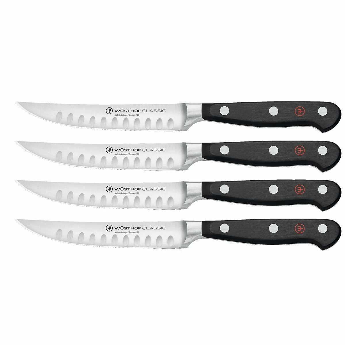 Wusthof Classic 4-Piece Steak Knife Set (Hollow-Edge) Features:
